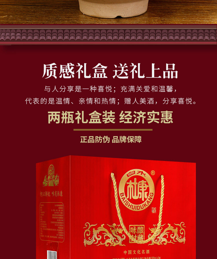 【正品保证】杜康52度白酒2瓶礼盒装粮食酒。酒逢知己千杯少,体丰满堦调的独特风格,香气悠久,酒味醇香,入口甘甜,入喉爽静,才下舌尖,便上心间!送礼更有面儿~