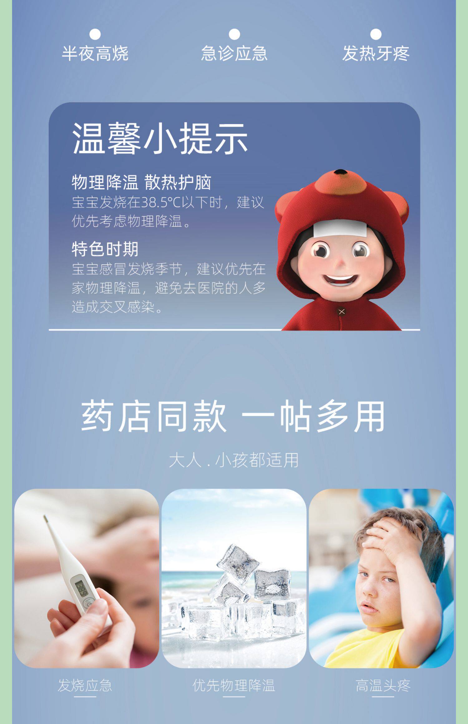 【药监局已备案】人难免感冒发烧!埃尼医用退热贴,物理降温,退烧退热,高温变色,融合TDDS技术、薄荷提取物、亲水性高分子凝胶,双效冷却!成人儿童均可用,每个家庭放心的选择!!