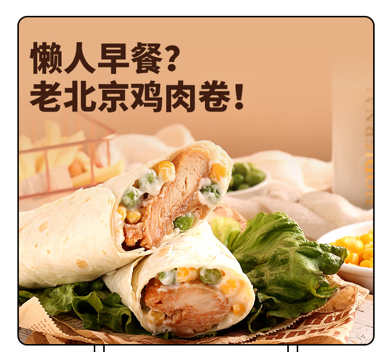 【8个独立包装】加热即食老北京鸡肉卷,口感筋道,麦香十足,精选食材,营养健康,口感细腻,老少皆宜,健康低脂,加热即食!