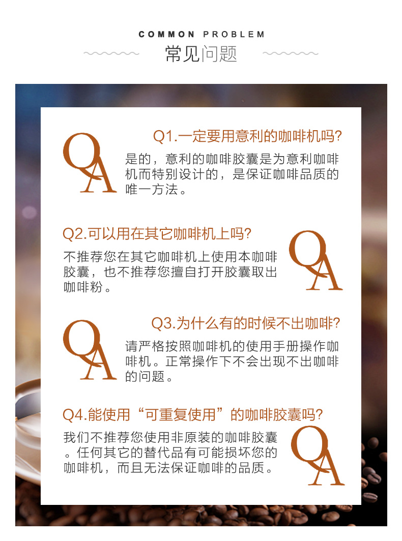 意大利货源直供,9种上乘的阿拉比咖啡豆的融合,每一粒都经过电子光谱仪检测,甘醇芳香,丝滑味美,口感浓郁,层次丰富,让您享受意式浓缩的经典!
