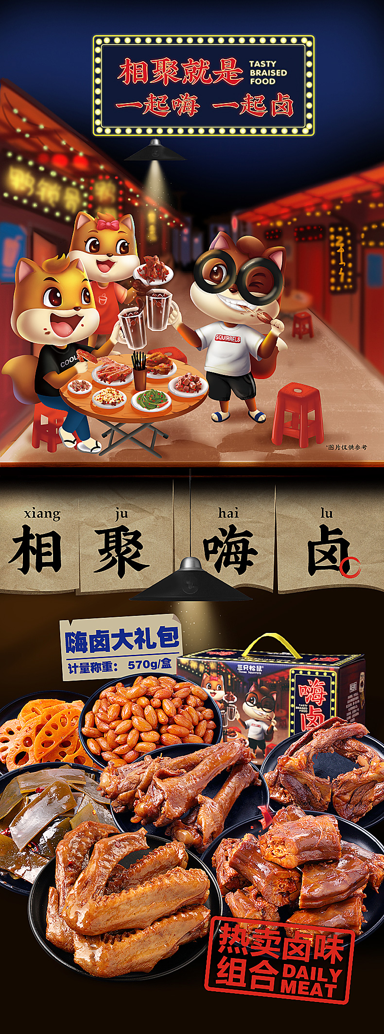 【返5猫超卡】三只松鼠鸭肉嗨卤荤素卤味大礼包570g,好吃美味,追剧必备