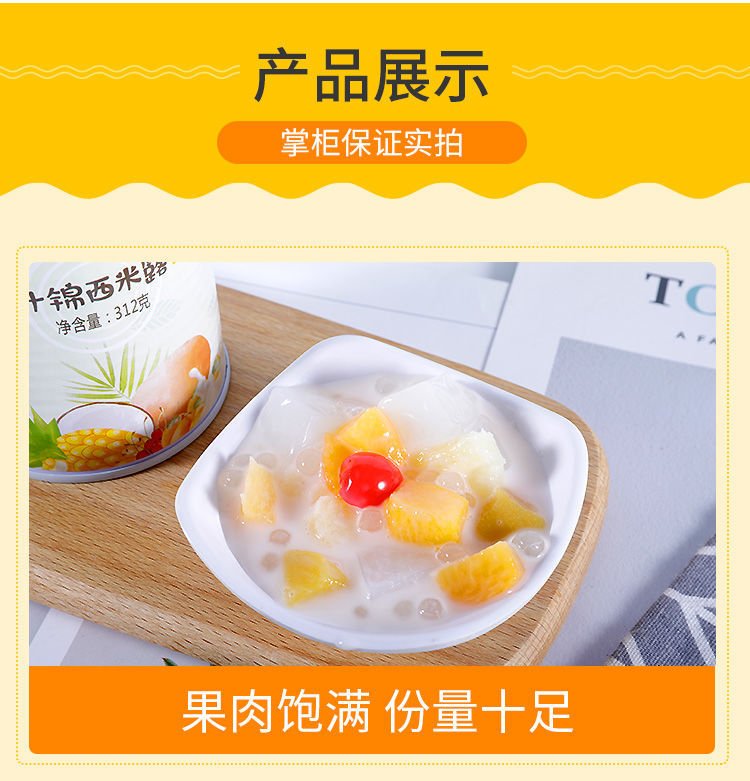 【六种口味,312g/罐】酸奶水果西米露,甄选进口奶源和西米露,自有果源采摘加工,口感脆嫩,香甜可口,快速锁鲜【拒绝色素,拒绝防腐剂,拒绝催熟剂】层层把控!放心购!