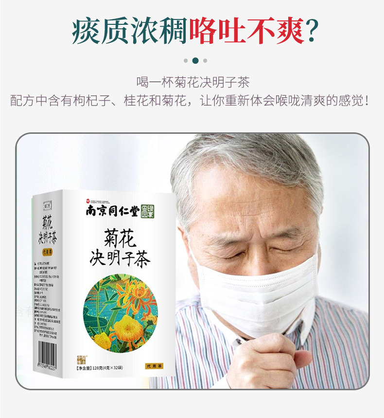 南京同仁堂出品,专注健康产业“中华老.字号”,决明子,枸杞子,菊花,金银花,牛蒡根等9种原料科学配比,独立茶袋,清热去火,呵护心肝,拒绝熬夜爆痘,告别眼睛酸涩。