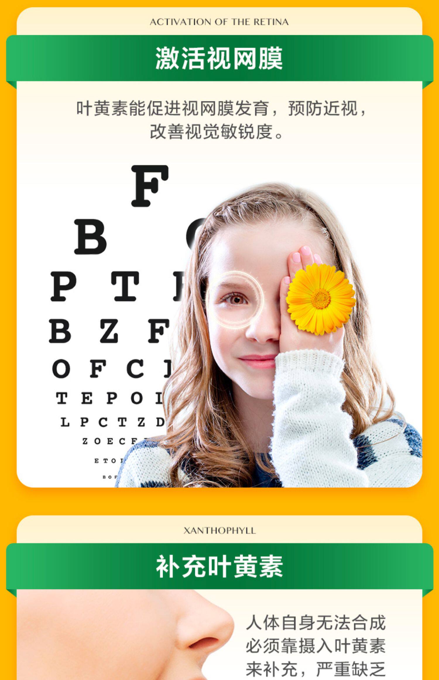 美国专利,6mg护眼叶黄素,拒绝眼疲劳,增进视力,阻隔有害光,香橙味Q弹,大人小孩都爱吃的护眼软糖!