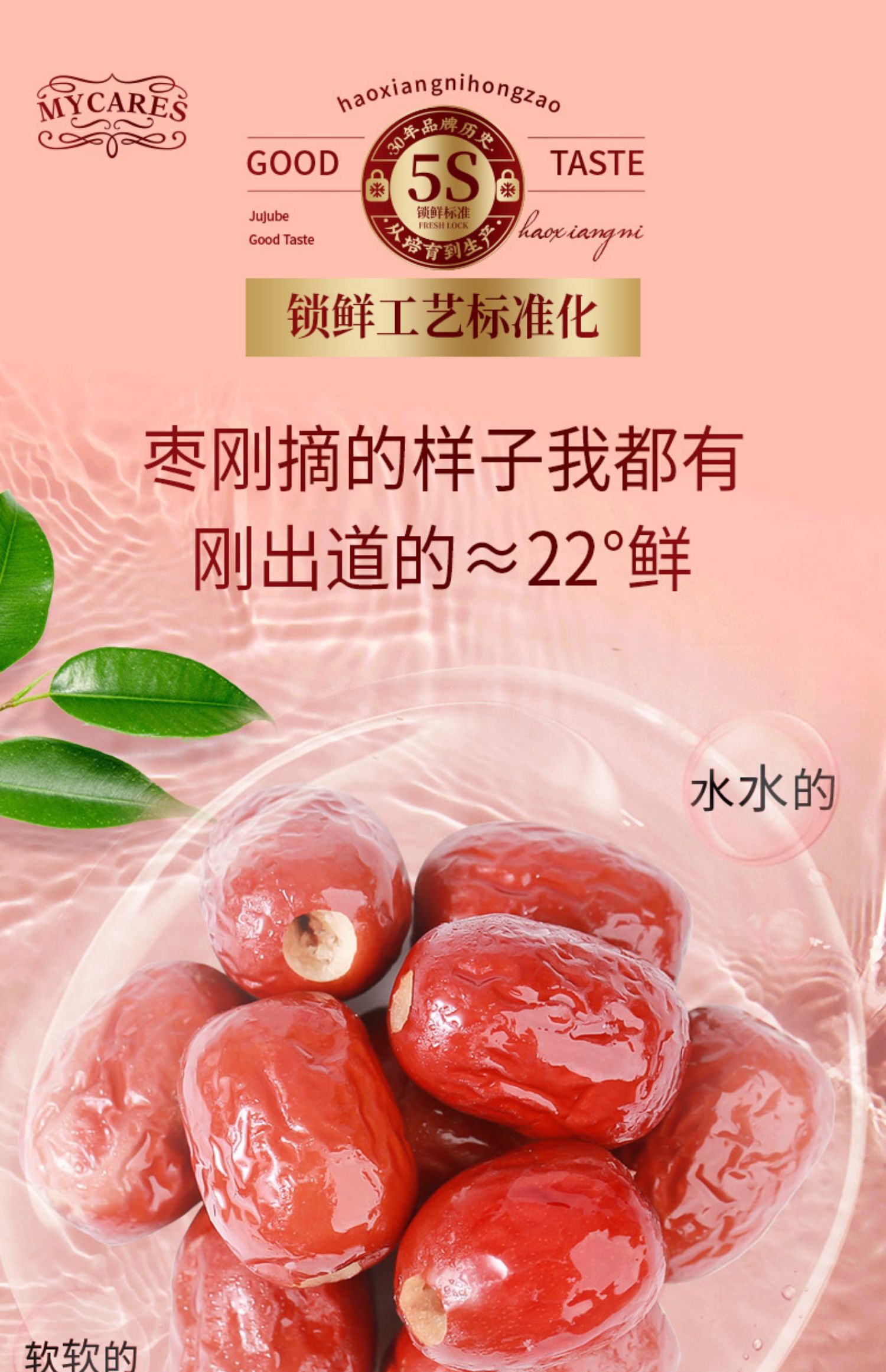 精选新疆红枣,果实自然成熟,自然挂干,多方位无死角清洗,颗颗严格筛选,果肉饱满,肉质紧凑细腻,枣香浓郁,香甜可口,好吃不腻哦!~