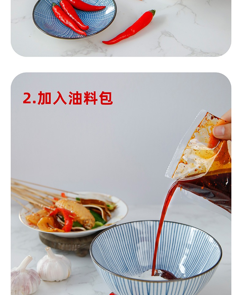 精心调制,麻辣鲜香,咸甜适中,油艳欲滴,操作简单,一料百用,一袋三包料,可以多次使用!吃货必备,买它!