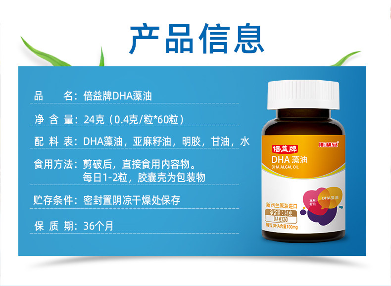 斯利安dha天猫正品孕妇儿童dha新西兰原装进口添加亚麻籽油60粒,营养不间断,孕产同补,优质藻类提取。