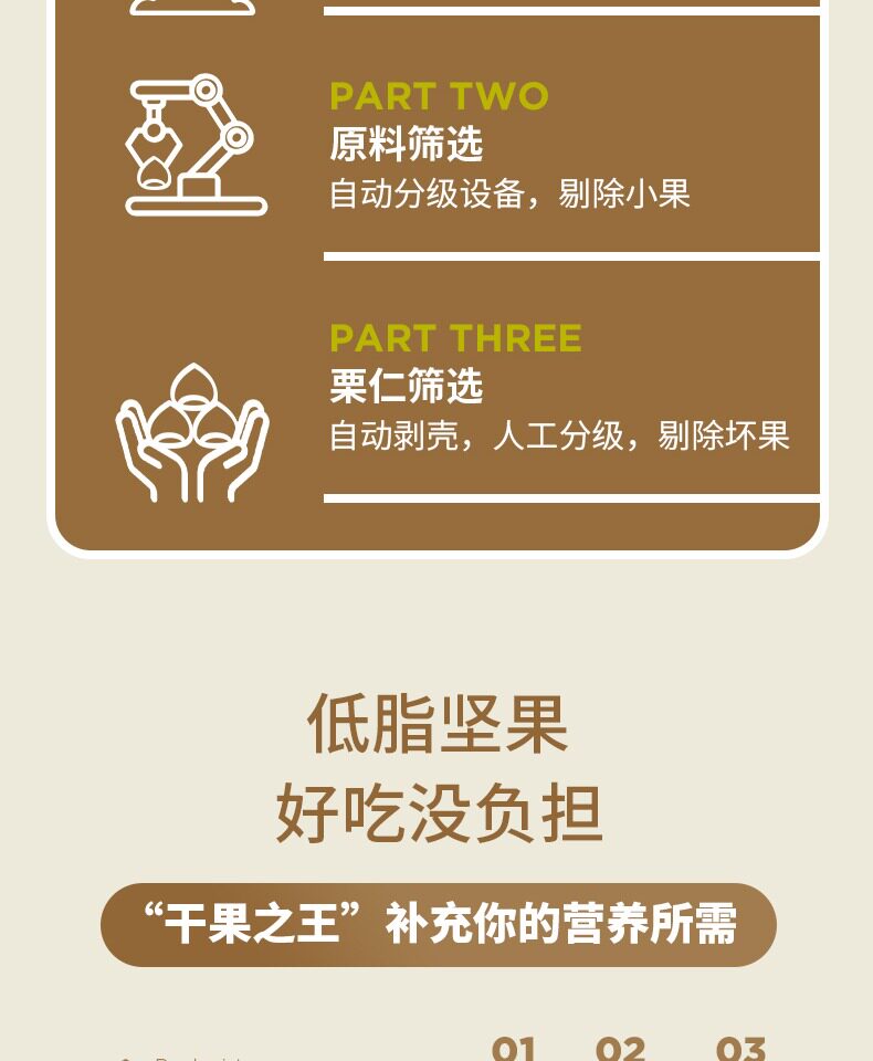 精选优质板栗,颗颗饱满无坏果,香甜软糯,口口好滋味,不添加防腐剂,开袋即食,老人孩子都爱吃的健康零食!多买几袋一次吃过瘾