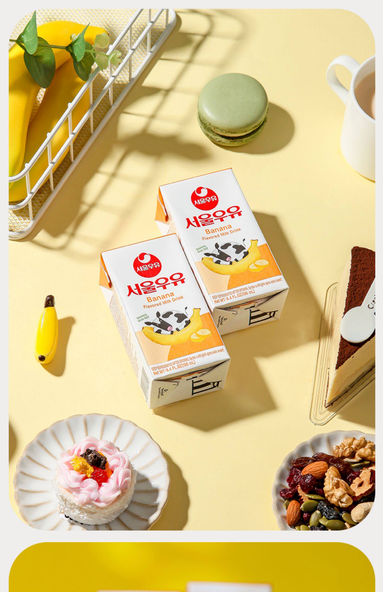韩国寿尔首尔原装进口香蕉牛奶饮品低温保存190ML/瓶10月31日前喝,香蕉清香,甜而不腻,入口浓浓香蕉香甜,回味醇甜,不甜腻,每一口都是美好,香蕉与牛奶的美味CP,营养与美味坚固。