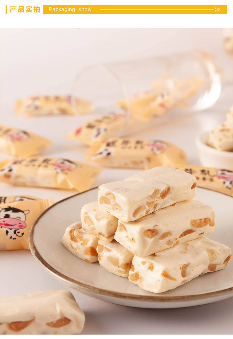 牛轧糖花生牛轧奶糖,奶香浓郁,微甜不腻。只减热量,不减营养。软糯清新香甜,开启一天美妙心情。