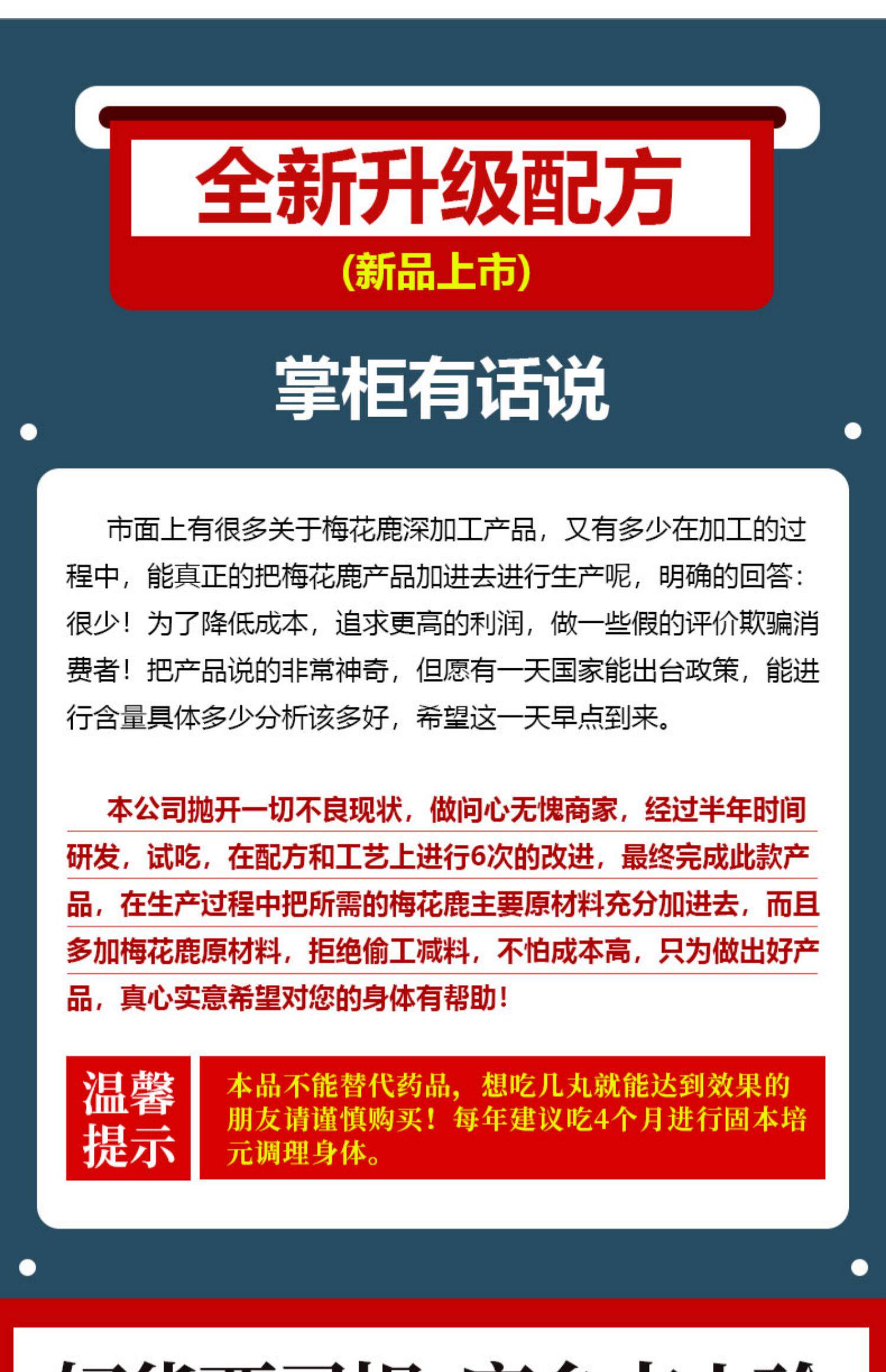 鹿尾鹿鞭丸,无激素,无副作用,旗舰店,多种原料含量足,服用方便,携带方便,独立包装,卫生方便,周期服用效果更佳。
