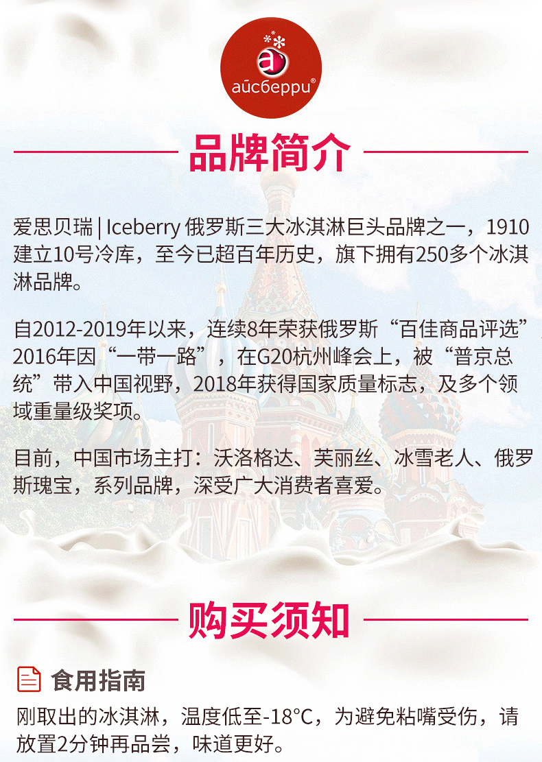 【薇娅推荐】进博会指定冷饮品牌网红进口冰淇淋,俄罗斯国民级百年品牌,纯正鲜奶制成,富含脂溶性维生素、高蛋白,无任何添加剂、人工色素,老妇幼皆宜,全程顺丰冷链,融化包赔!