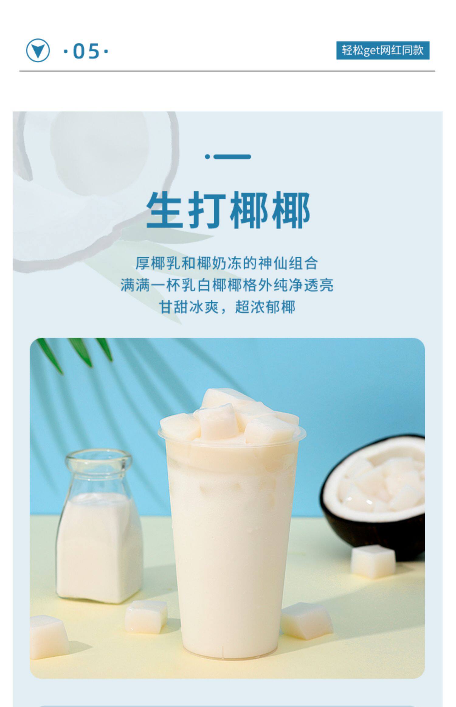 佣有醇厚的椰乳口感,奶冻QQ弹弹,鲜治工艺,充分还原椰奶冻的原始味道,椰香浓郁,香甜细腻,风味淳正,口感稳定。