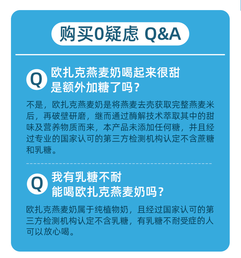 【欧扎克旗舰店】欧扎克植物蛋白燕麦饮品,喜欢喝燕麦奶的小宝贝一定不要错过它!脂肪含量真的低!!非常好喝!0蔗糖,0乳糖,配料干净不加糖,减肥的宝贝强烈推荐!【赠运费险】