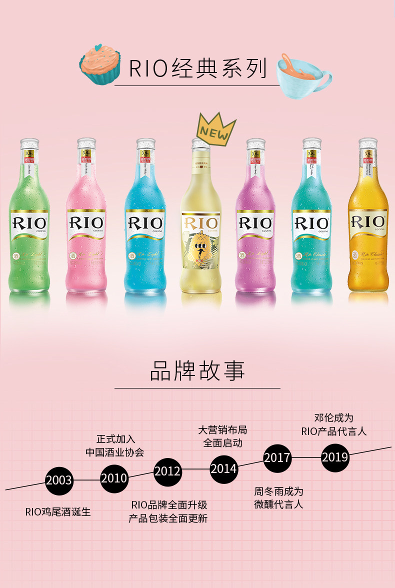 【叠加跨店满减+美食券+88会员95折,到手价53.1元,单瓶到手8.9元】RIO鸡尾酒玻璃霓虹经典瓶275ml*6瓶