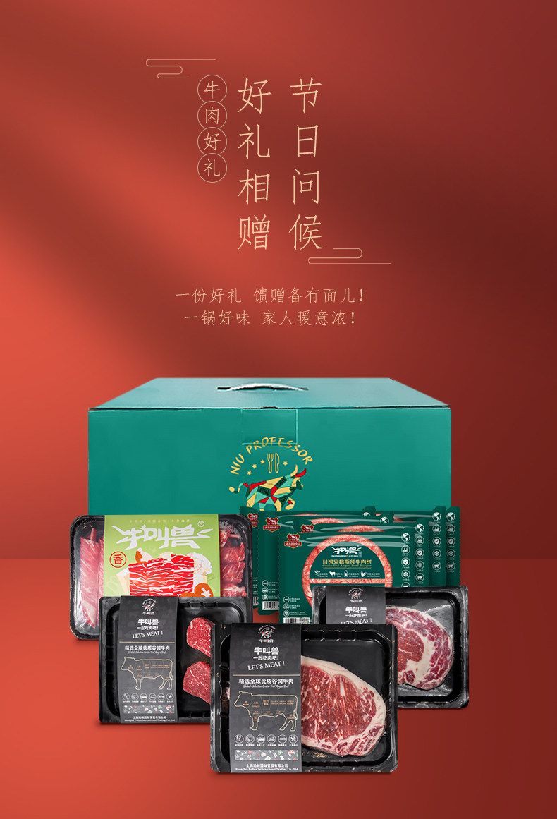 牛叫兽进口谷饲牛肉新年礼盒1960g