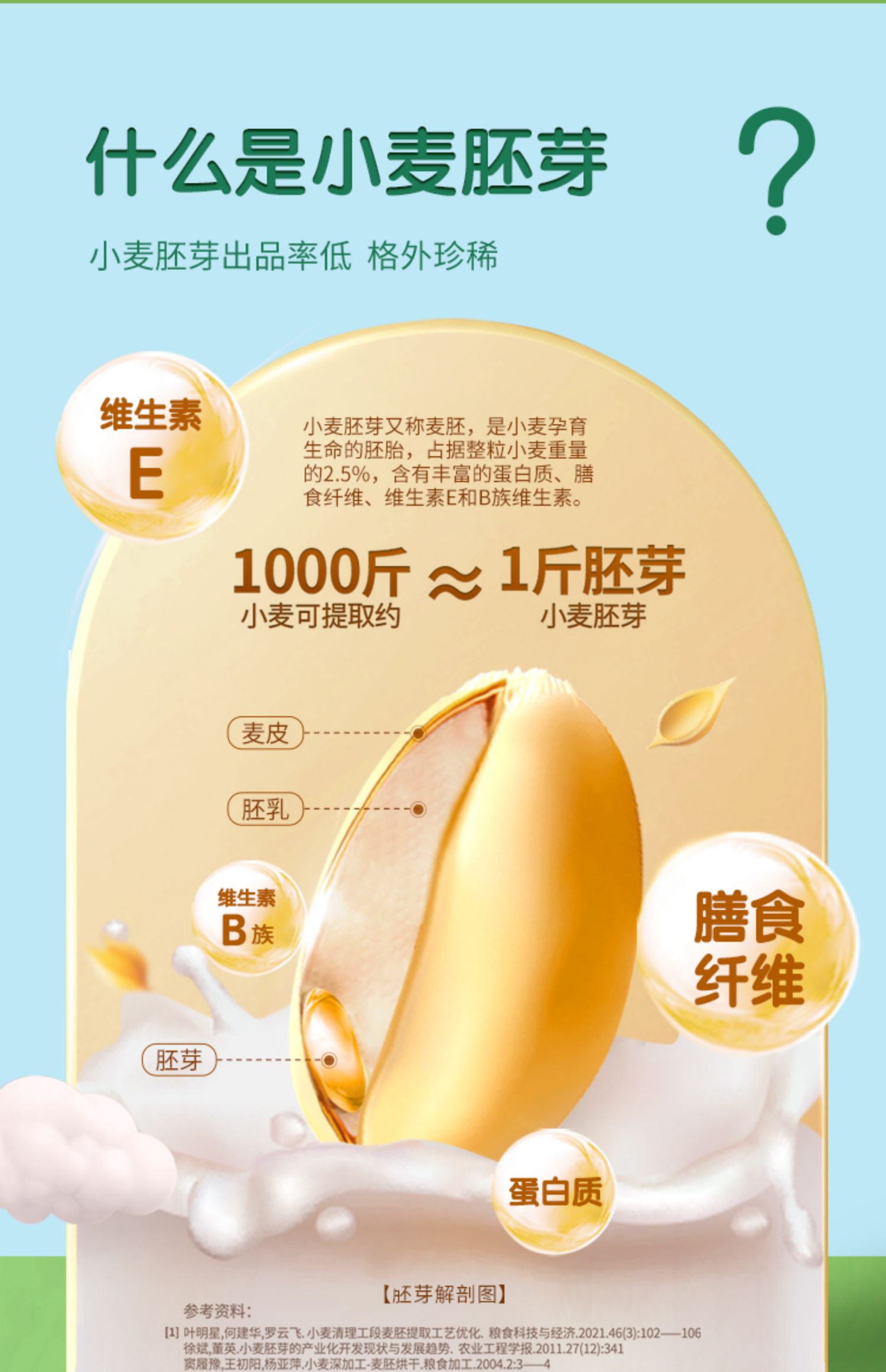 我们的配料很单纯,只有小麦和胚芽,成分简单,丰富营养看得见,组织松软,麦香浓郁,更符合小朋友的口味,