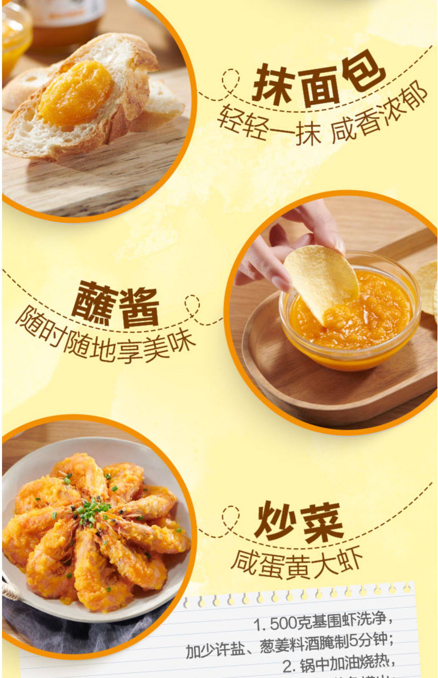 家乐流沙咸蛋黄酱调味酱200G*2瓶,严选北海海鸭蛋,足足8颗蛋黄,色红圆大,香酥爽口,采用22道古法工序,保留蛋黄的鲜,细,嫩,松,沙,油!将营养和美味统统装进这一罐蛋黄酱里【赠运费险】