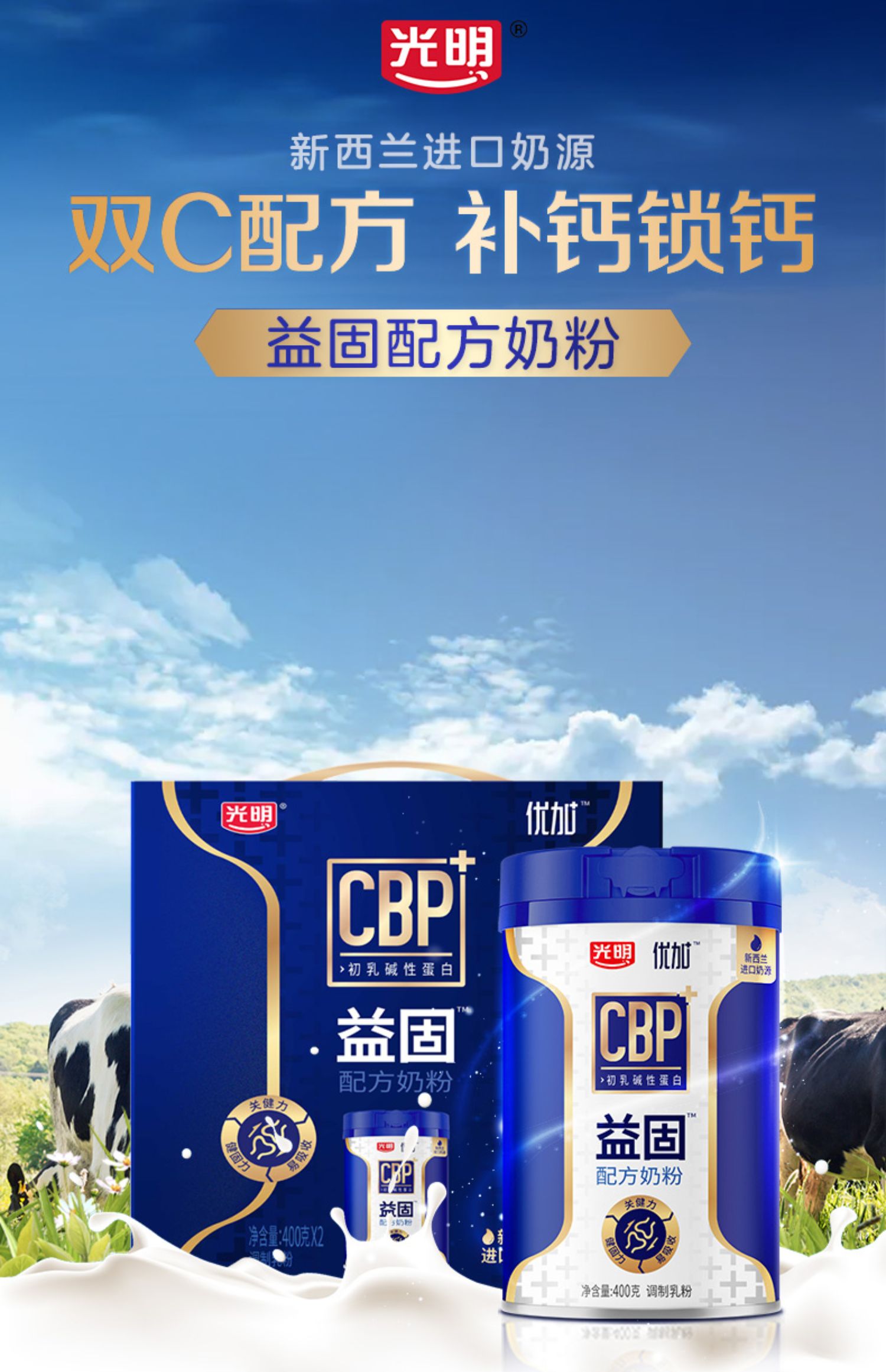 光明优加益固高钙奶粉礼盒400g*2罐