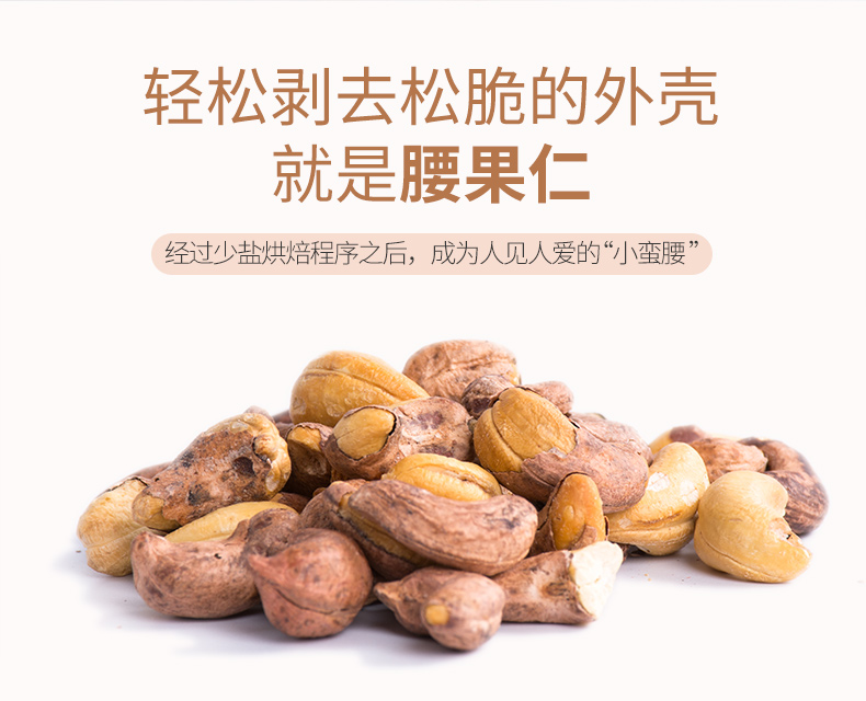 炭烧腰果,精选腰果,颗粒大,又饱满,精挑细选无坏果,含有多种营养成分!小孩孕妇可尽情享用,健康安全,果仁饱满,美妙口感,酥到心里~