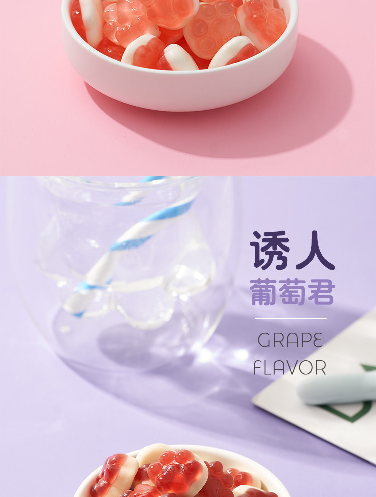 软乎乎的猫爪软糖真的可爱哭了,上面是水果层,下层是酸奶,口感超丰富,吃起来更是QQ弹弹的,而且不粘牙,郊游、追剧必备的零食!!