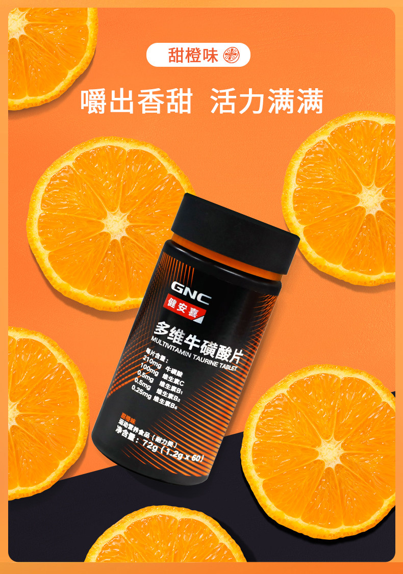 GNC健安喜多维牛磺酸维生素C复合Vb成人男士多维维生素b族咀嚼片,每日一片,活力满满。