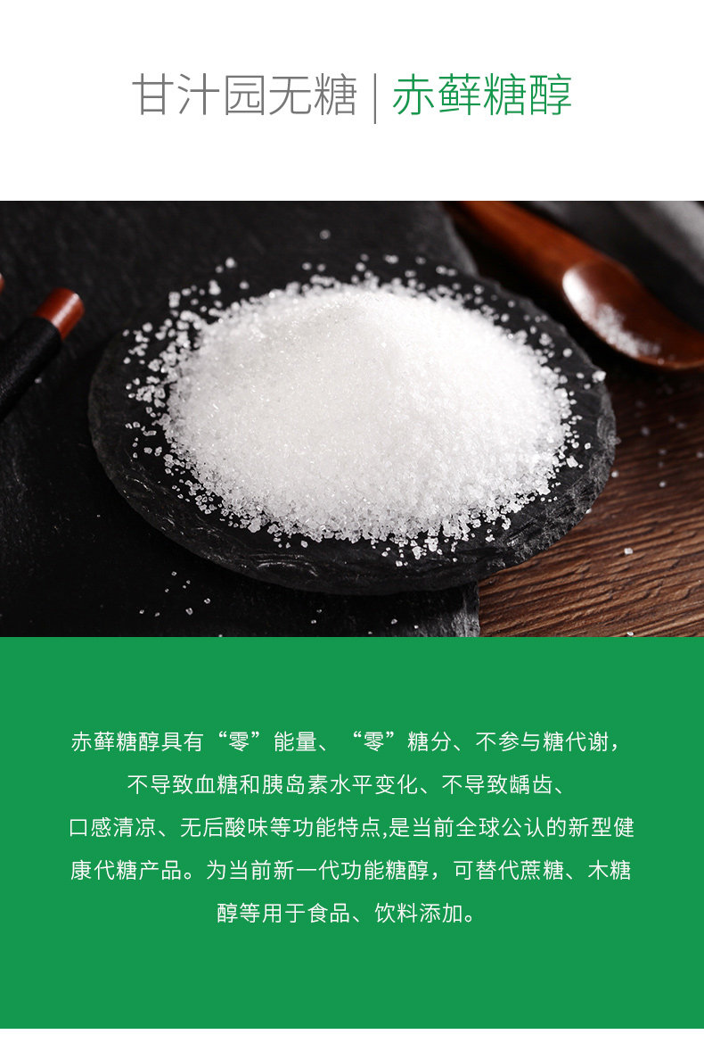 减糖不减甜,不影响升糖,1:1白砂糖甜度,无需改变用糖习惯,耐热性强,适合用于日常烹饪。
