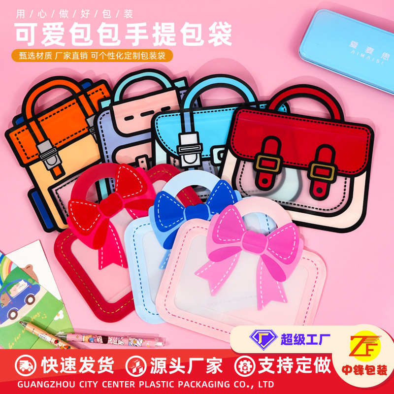 卡通拎袋造型自封袋立式手提袋首饰小物件收纳袋少女心零食包装袋