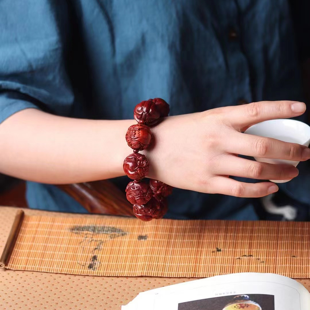 紫檀血檀20mm佛珠手串找财貔貅雕刻手链国风文玩男款礼品