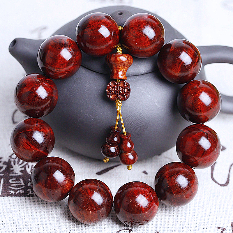 正宗小叶红檀木手串本命年手链男女士20mm小孔情侣首饰品红木紫檀