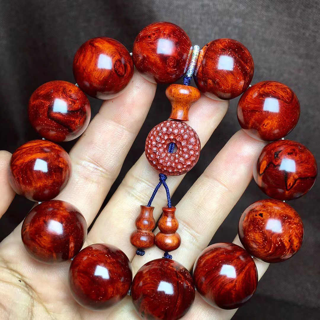 星玺印度小叶紫檀手串2.0满瘤疤孤品20mm鱼鳞底老料鸡血水波纹珠