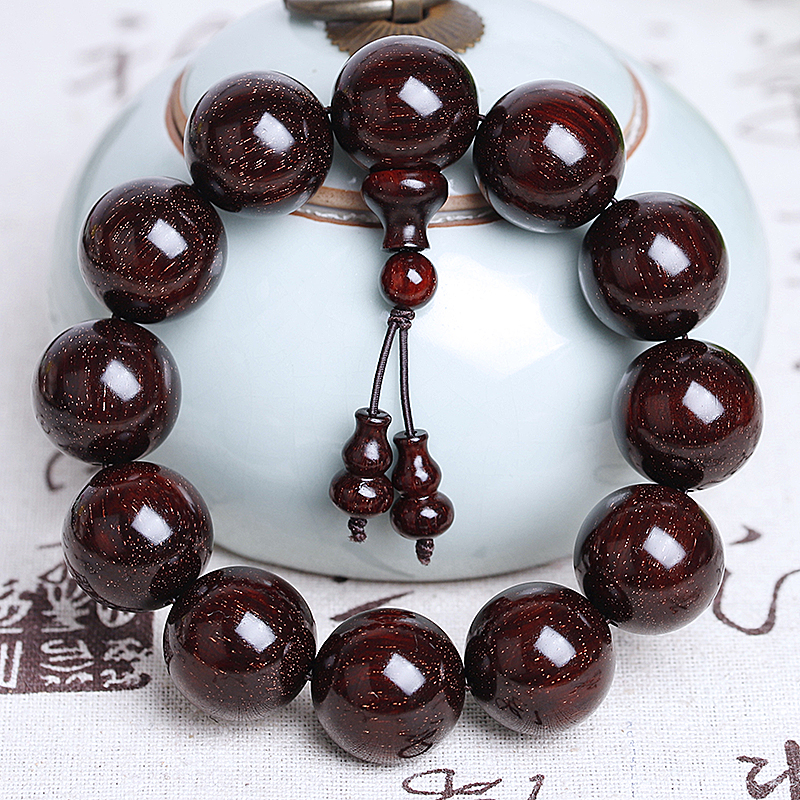 小叶紫檀手串男佛珠20高密精工赞比亚紫檀手链念珠满金星红木文玩