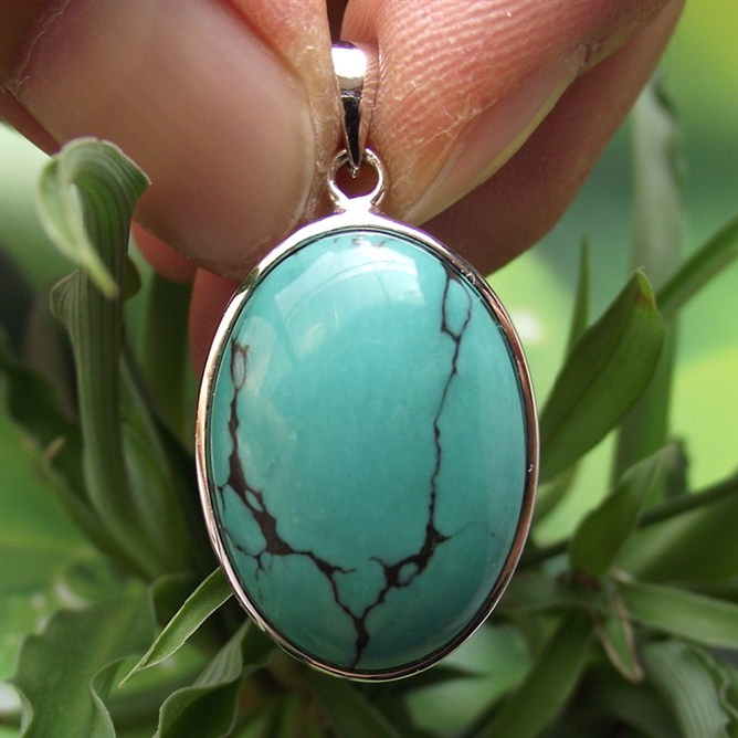 天然原矿绿松石吊坠方牌925银镶嵌款吊坠 女款绿松挂坠饰品小坠子