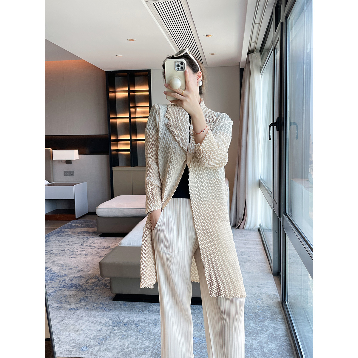 25春秋秋季新款气质通勤yz翻领豆腐褶皱风衣女时尚百搭外套中长款
