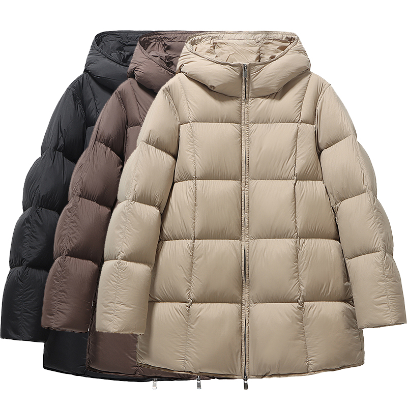 羽绒服女冬季2025新款今年流行爆款中长款豆腐块设计感小众鹅绒服