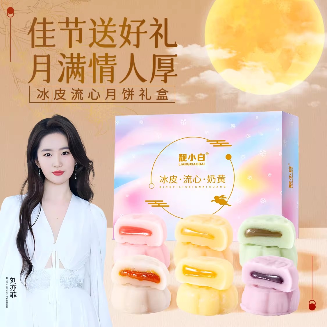 清真冰皮月饼奶黄流心散装桃山皮茶点批发中秋节送礼团购企业定制