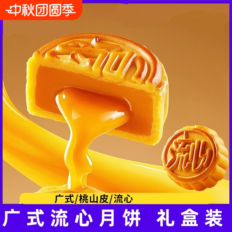 奶黄流心月饼礼盒装中秋送礼巧克力广式蛋黄莲蓉散装冰皮港式传统