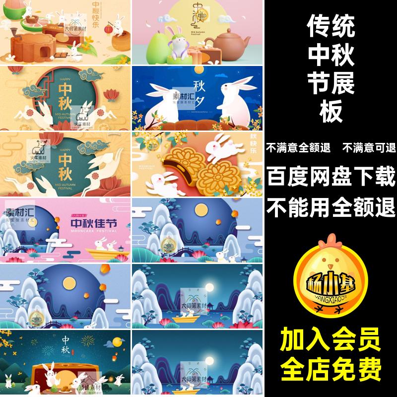 传统中秋节展板背景AI月饼佳节海报嫦娥宣传玉兔促销模板中秋节
