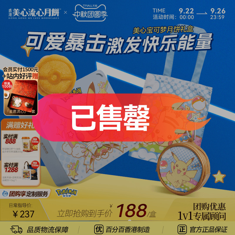 香港美心宝可梦联名礼盒装挂包皮卡丘卡通香滑奶黄月饼中秋送礼物