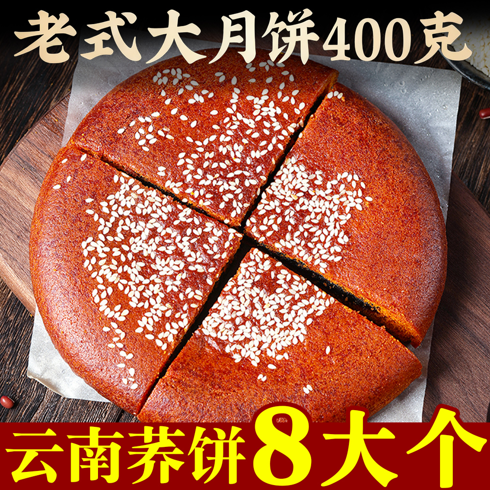 玫食美刻云南特产大荞饼荞三香豆沙五仁老式手工大个月饼中秋糕点