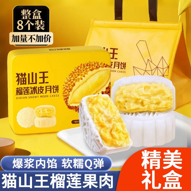 猫山王榴莲冰皮月饼广式流心2025新款中秋节礼盒8粒装官方旗舰店