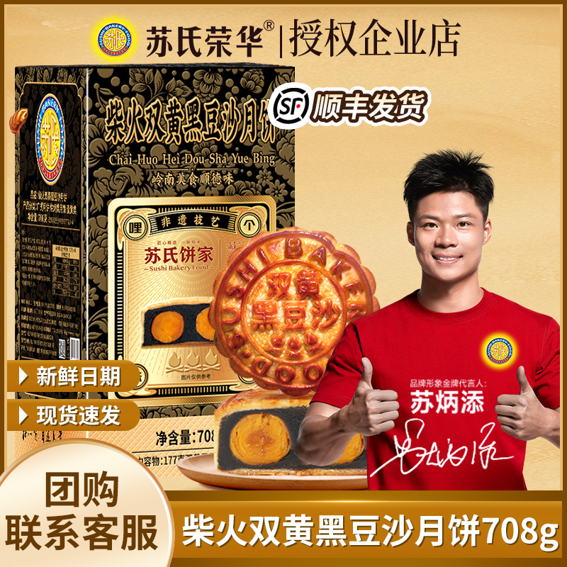 陈进晃饼家柴火黑豆沙月饼蛋黄广式筒装传统手工糕点台山深井特产