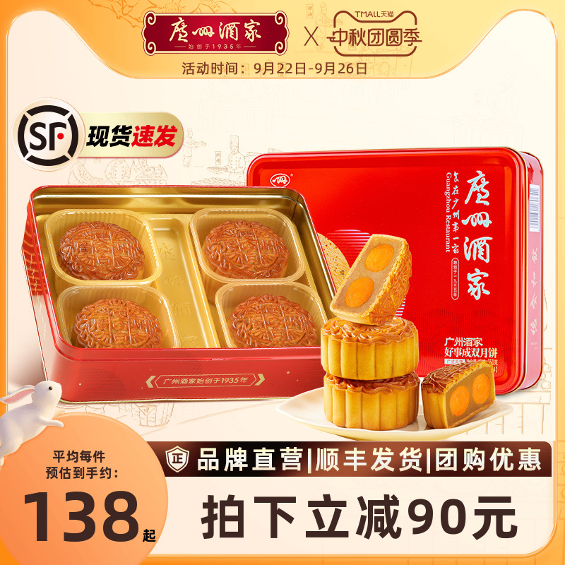 广州酒家双黄纯正白莲蓉月饼礼盒广式双蛋黄月饼中秋节日团购送礼