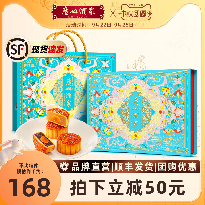 广州官方传统酒家月饼蛋黄莲蓉五仁双黄豆沙礼盒装高档广式送礼