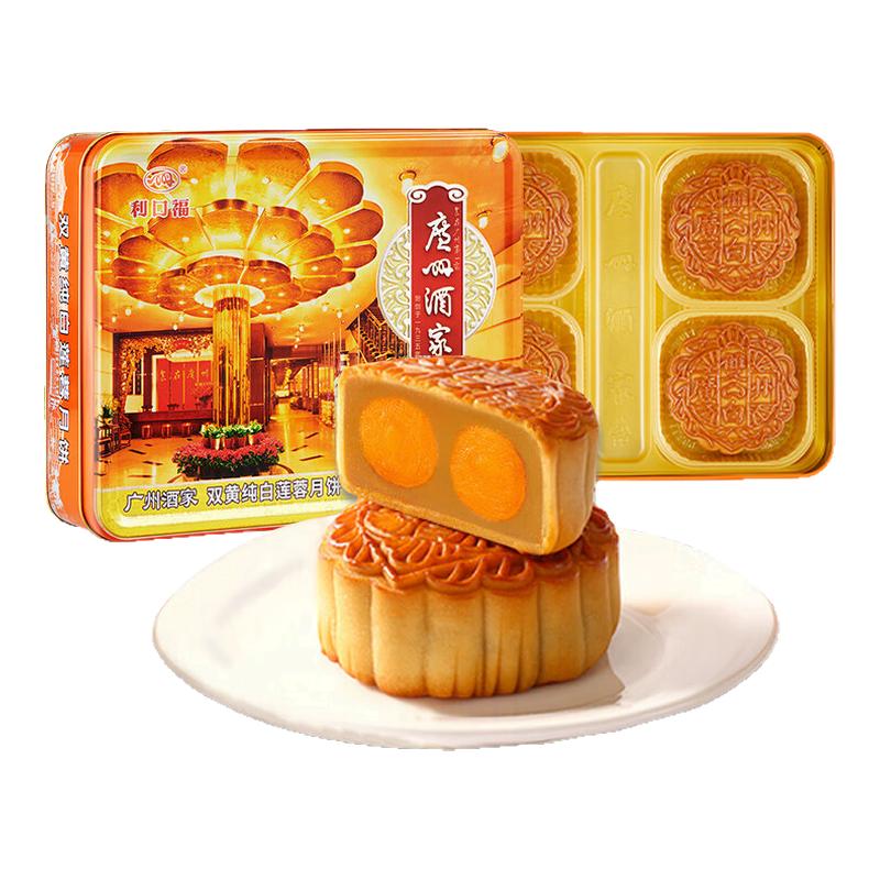 广州正宗广式低糖双黄白莲蓉月饼传统咸蛋黄白莲蓉酒家中秋礼盒装
