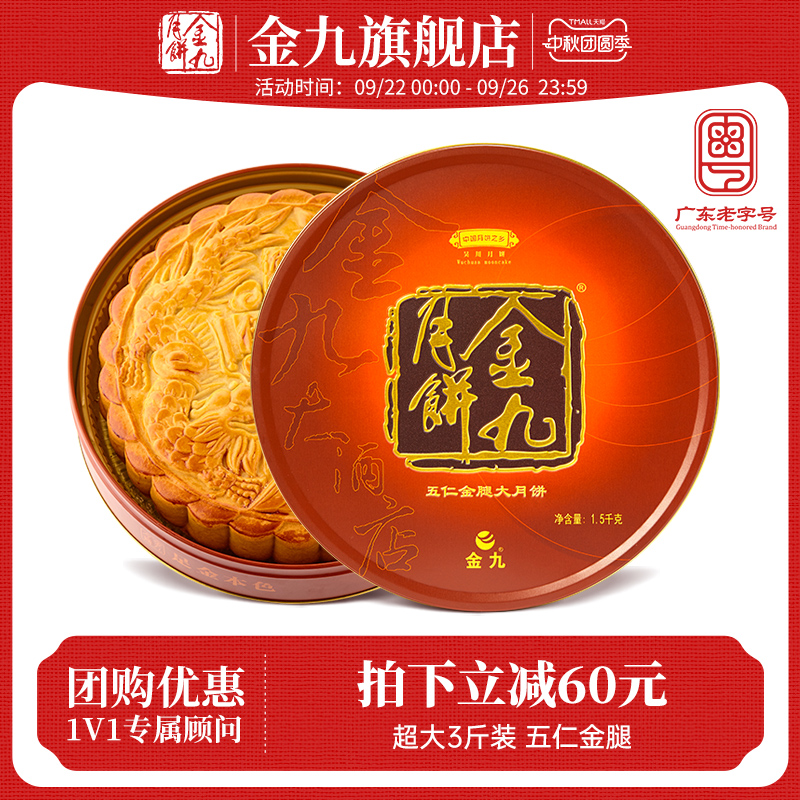 梅元居五仁月饼伍仁金腿火腿广东老式中秋大月饼2斤礼盒一旗舰店