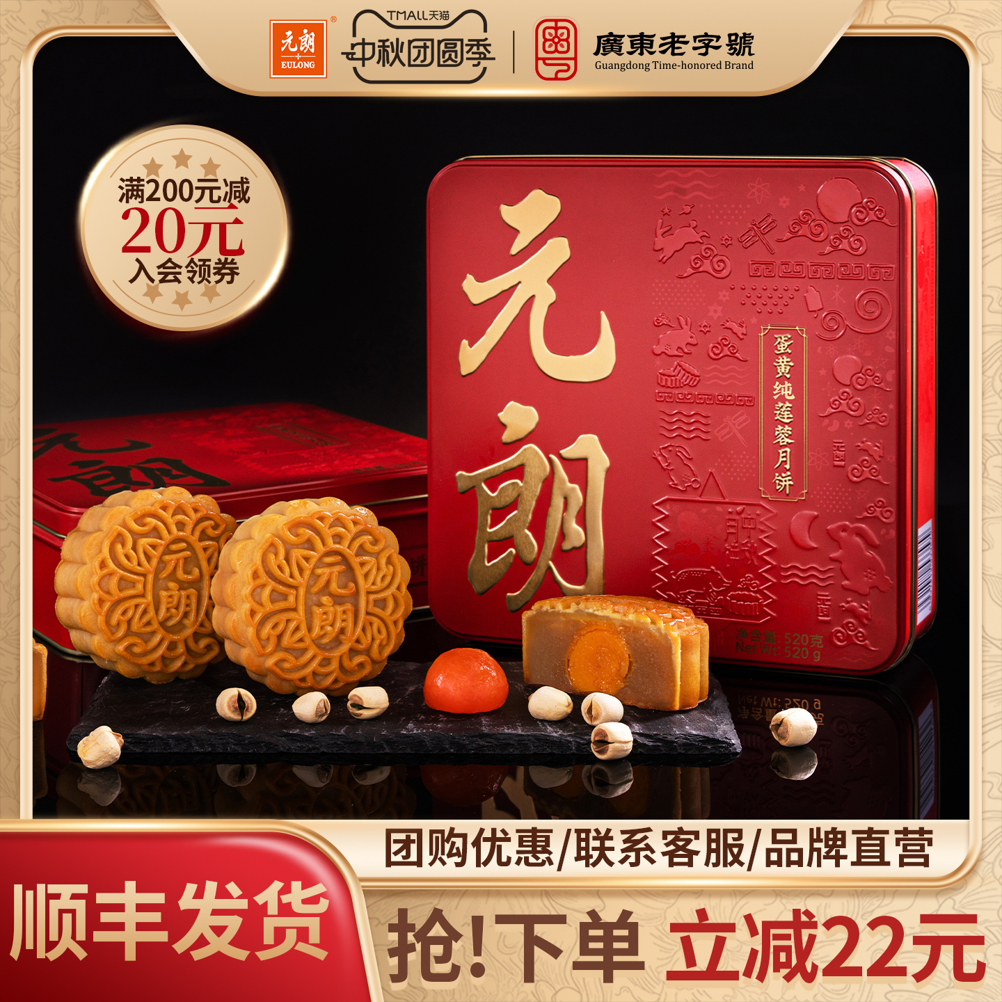 广州荔煌酒家双黄100%纯莲蓉月饼中秋节礼盒装送礼团购批发