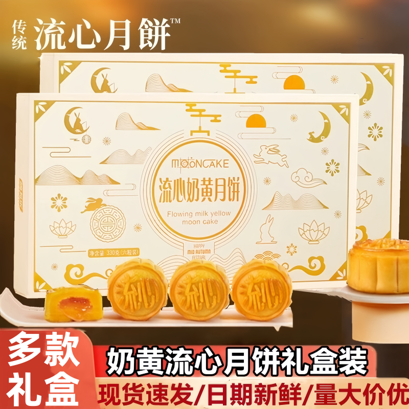 流心奶黄月饼中秋节礼盒装送礼港式蛋黄流沙零食广式礼品2025新款