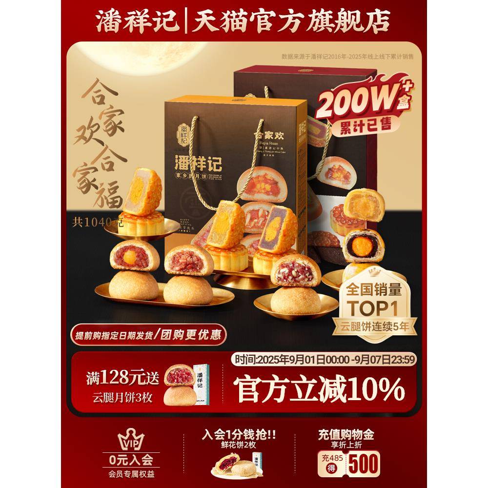 潘祥记合家欢云腿月饼礼盒装合家福滇式火腿月饼网红同款中秋送礼