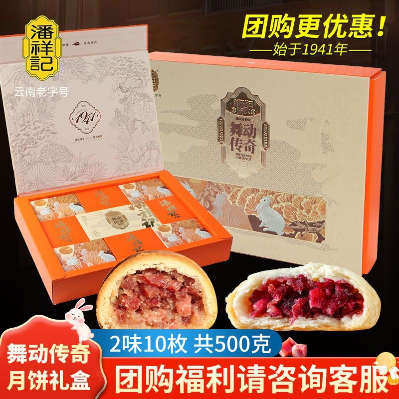 礼盒潘祥记云月饼鲜花云腿蛋黄中秋节送礼云南特产宣威火腿月饼